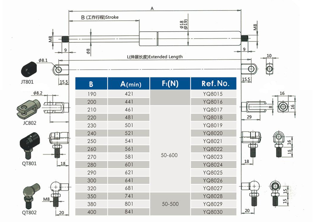 举升气弹簧YQ8/18-18